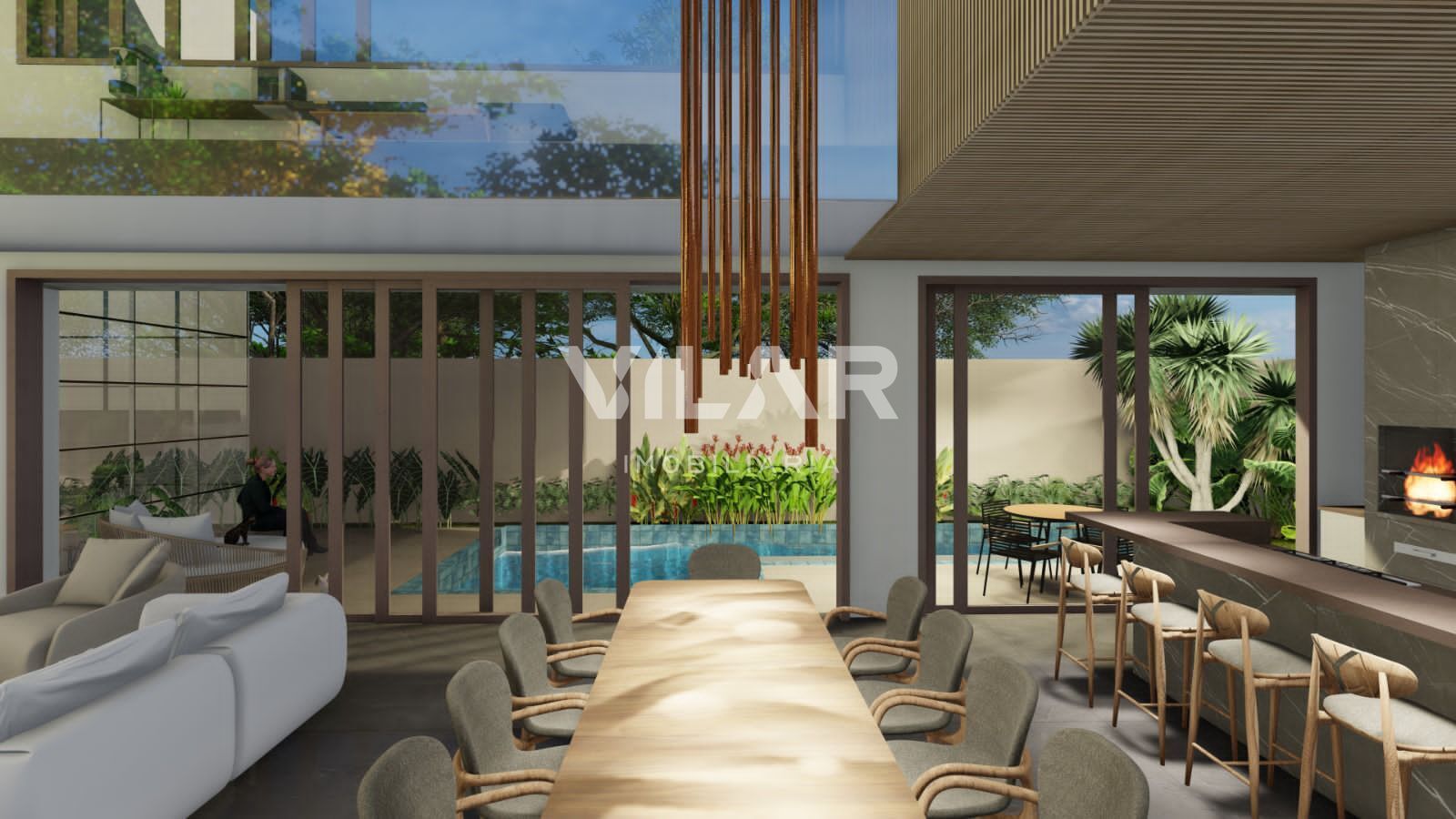 - Sala com cozinha gourmet integrada